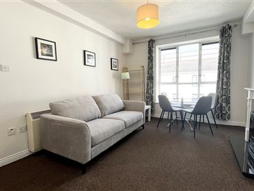 This spacious, light-filled fifth-floor apartment is superbly located just minutes from O’Connell Street. With a southwest-facing aspect, the interior enjoys excellent natural light throughout the day. The accommodation includes a bright living room with a separate kitchen, a generous double bedroom, a well-appointed bathroom, and an entrance hall with a storage/airing cupboard. Lift access serves all floors, and the property holds a C2 BER rating. Please note that parking is not available.