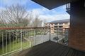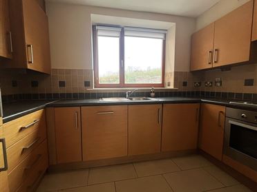 Situated on the first floor, the apartment comprises a welcoming entrance hall with a convenient storage cupboard. The bright open-plan living, dining, and kitchen area features a modern kitchen with ample storage and an open-plan living/dining space with direct access to a private balcony, overlooking the grounds.