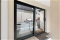 Large sliding patio doors opening to the rear courtyard.