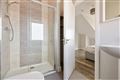 En-suite (1.21m x 2.66m) Shower room with tiled flooring, W.C., W.H.B., walk-in shower and heated towel rail.