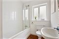 Wood flooring, tiled wet areas, bath, shower screen, extractor fan, toilet, wash hand basin and pedestal.
