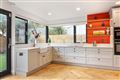 Kitchen/Dining Room: A stunning open-plan kitchen and dining area, flooded with natural light from above skylight. Featuring exquisite cabinetry, a Belfast sink, and ample space for family dining, with sliding patio doors providing easy access to the garden. (5.53m x 6.60m)