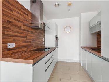 Positioned on the top floor, this stylish, turnkey-ready one-bedroom property is perfect for those seeking a modern home with effortless access to Dublin City, Stillorgan, Dundrum, and Foxrock. The apartment features an open-plan layout with floor-to-ceiling windows that enhance its airy ambience. The contemporary kitchen boasts sleek cabinetry, integrated appliances, and a thoughtfully designed space for daily living and entertaining. The bedroom benefits from floor-to-ceiling windows, generous sliding wardrobes, and direct access to a private balcony. A luxurious, marble-tiled bathroom completes the accommodation.
