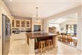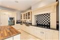 • Kitchen / Breakfast Room (6.33m x 4.68m): Contemporary open-plan kitchen/breakfast room with steps leading to the family room and garden with cream hand-painted design cabinetry, granite countertops, a large island and breakfast bar with oak countertop, integrated appliances, tiled floor and recessed lighting.