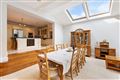 • Sitting Room / Dining Room (8.07m x 6.34m): Large sitting/dining room with fireplace, tiled floor, recessed lighting, vaulted ceiling with Velux windows, and access to the garden.